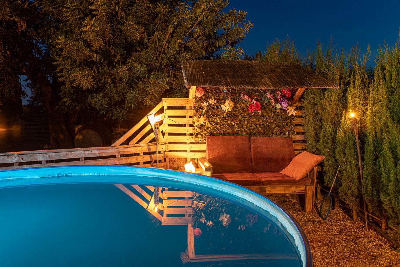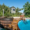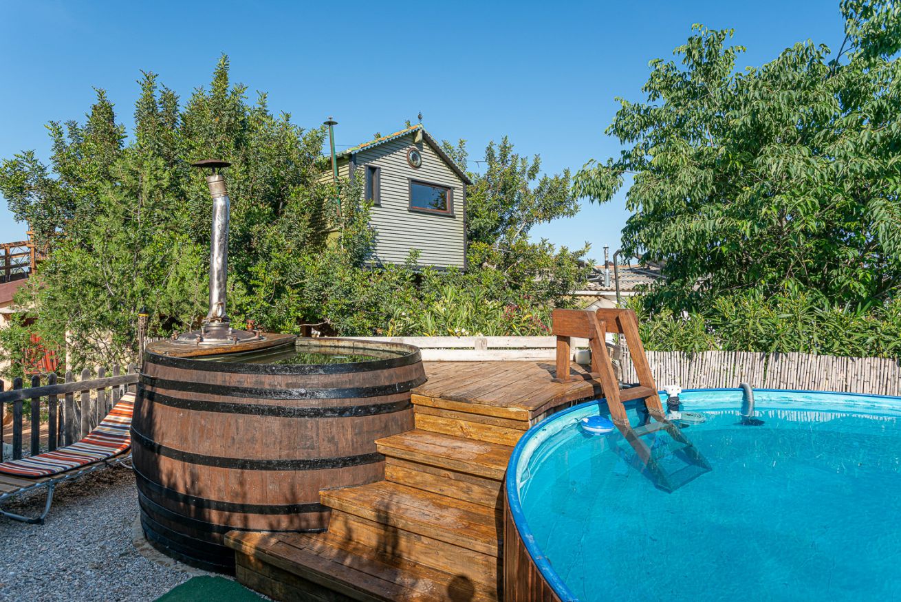 It has sheets and towels, kitchen utensils and Wi-Fi, and the barbecue area has free firewood, a stove, a sink and an under-counter fridge. We also have an exclusive pool for the cabin, open from June 1st to September 30th.